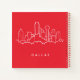 This design features a hand drawn sketch of the Dallas skyline on burgundy.