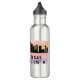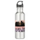 Stainless steel water bottle features Dallas Texas city skyline silhouette with watercolor splash and latitude & longitude map coordinates