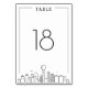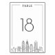 A unique wedding table number cards for a marriage taking place in the beautiful city of Dallas. It features a simplified table number resting above a stylised version of the famous city's unique skyline.