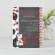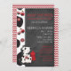 This designed baby shower invitation has a dalmatian setting in front of the red fire hydrant and fire trucks with Fire Department emblems are on one side with red chevron print on the other. This design can also be changed to a birthday celebration by changing the wording.