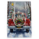 Bring spotted, distinctive charm to your holiday season with this energetic Dalmatian Christmas design! This eye-catching scene features three alert and handsome Dalmatians sitting attentively in the back of a classic red pickup truck, nestled in a picturesque snowy winter forest. The vintage truck is adorned with a vibrant Christmas wreath, twinkling with red and gold ornaments and warm, glowing lights. Soft snowflakes gently fall, enhancing the winter wonderland effect. A decorated Christmas tree in the background completes this heartwarming picture, making it an ideal Christmas gift for any Dalmatian owner, dog lover, or admirer of festive and unique dog art. This design perfectly captures the joyful spirit of the holidays.