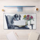An illustrated Dalmatian dog engrossed in a book, its distinct black spots contrasting against the white fur as he’s curled up comfortably with a paw on the pages, lost in the world of words and imagination. This desk mat not only adds a touch of canine charm to your desk but also serves as a practical and protective surface for your keyboard and mouse. Elevate your desk set up and bring a smile to your face every time you sit down to work with this adorable and functional desk mat.