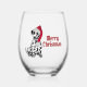 Dalmatian Dog Red Stocking Cap Merry Christmas Stemless Wine Glass