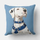 Stylised illustration of a Dalmatian dog wearing a blue collar against a plain blue background, highlighting its distinct spotted appearance and friendly demeanour.