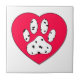 Dalmatian Paw Print In Red Heart Ceramic Tile