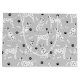 Cute Dalmatian dogs sit and stand black and white spotted coats with scattered dog bones and pawprints pattern.