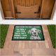 Custom dog doormat with a funny quote. "To you, I am the dog, but here, I am the baby." It has a non-slip rubber that won't crack or buckle, resists fading, mould, and mildew and can be easily cleaned with a hose. Be creative - click on CUSTOMIZE to add/remove/change text, change the picture, resize the picture, change colours, background or anything else the customisation tool will allow!