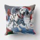 Dalmatian Running in Snow with Christmas Hat Cushion