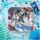 A spotted Dalmatian runs playfully through the snowy winter scene, wearing a festive red Christmas hat. This lively design highlights the breed’s distinctive coat, energetic personality, and cheerful spirit while capturing the warmth and joy of the holiday season. A heartwarming winter moment full of festive charm.