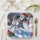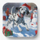 Dalmatian Running in Snow with Christmas Hat Paper Plate