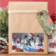 A spotted Dalmatian runs playfully through the snowy winter scene, wearing a festive red Christmas hat. This lively design highlights the breed’s distinctive coat, energetic personality, and cheerful spirit while capturing the warmth and joy of the holiday season. A heartwarming winter moment full of festive charm.