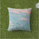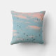 The pastel, dalmatian spotted print on this Throw Pillow was created from an original photograph by ZoeSPEAK of an aqua blue sunset sky filled with puffy pink clouds and a flock of black birds. The birds become abstract black shapes scattered across the soft aqua and pink sky.