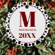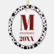 Black and white dalmatian spot pattern with a modern simple typography minimalist monogram name and year design which can be changed to personalise. A festive winter holiday red, black and white colour scheme.