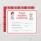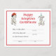 Cute firefighter theme boy's birthday party adoption certificate card featuring illustration of Dalmatian dogs with a fireman helmet and blue party hat. Give out stuffed animals during the party as a party favour along with this certificate!