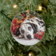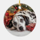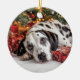 This adorable Christmas ornament, featuring a Dalmatian lying under a Christmas tree, is a wonderful gift for any Dalmatian lover.