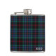 Monogrammed flask with the tartan for the Daly family. Traditional plaid pattern in royal blue, black, and green with bright red accents. Available in two sizes.