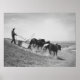 Stock water dam under construction using horse drawn construction equipment. Pennington County, South Dakota. Old photo taken by photographer Arthur Rothstein in May 1936.