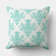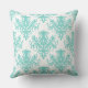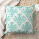 Damask 02 Pattern - Aqua Blue on White Cushion