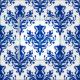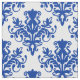 Damask 02 Pattern - Navy Blue on White Fabric