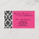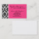 This 2x3.5 Sized beautiful Damask and Hot Pink Coloured business card is perfect for any business and is completely customisable! We have an entire line devoted to this design here at zazzle store under the * Design Collections menu tab to include invitations (5x7), Return Labels, Mailing Labels, Envelope Seals, Postage Stamps, Cup Cake Picks, Water Bottle Wrappers, Hershey's 1.55 oz. Large Bar Wrappers, Hershey's Miniature Stickers, Microwave Popcorn Bag Wrappers, Writable Place Cards, Goody Bag Toppers, FLAT Thank You Cards (4x5), FOLDED Thank You Cards (4x5), Favour Tags, Menu Cards, Mint Matchbooks, Lollipop Covers, Bookmarks, Bingo Cards, Bingo Card Markers, Bingo Card Call Out Sheets, Writable Advice cards (4x5), etc.