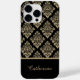 Damask Black Gold Swirl Personalised Name Case-Mate iPhone 14 Pro Max Case This design features an elegant gold damask pattern on a black background with a personalised name. Personalise by adding your name by editing the text in the text box or delete for no name. Designed for you by Evco Studio www.zazzle.com/store/evcostudio