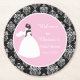 Beautiful Damask Bridal Shower Round Paper Coasters to use on your event table featuring a Damask ornate pattern background with a centre circle. The circle border and background as well as the text can be changed to suit your own requirements and other matching items are available in my store to create a themed party.