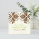 Elegant damask motif chocolate brown, lime green, ivory wedding Save the Date announcement. A modern yet classic wedding design with a retro flair. Delicate, with the elegant Parisian font and a vintage feel to it, perfect for a contemporary or traditional all seasons weddings: spring, summer, fall or winter.