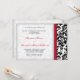 This totally elegant wedding invitation is beautiful enough to plan your decorations around! Featuring crisp black and white damask bordered by vibrant red to set it off perfectly! All text is fully customisable by you in choice of font and colours front and back. The back of the invitation features the black and white damask border around a large red centre with your new married monogram. Or use the centre as a frame and add your photo! Matching items available including postage! If you need any assistance don't hesitate to contact me via the message me on my store front or email me at DGGallery@yahoo.com