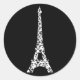 A simple and classic illustration of a black and white Eiffel Tower decorated in a damask pattern accents this sticker.