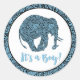 An exotic damask elephant in shades of blue over black with modern text announcing "It's a boy!". If you prefer to add your own text to this sticker, choose the "Customise it" button and delete the "It's a boy!" image, then insert your own custom text. See the matching baby shower invitation here: