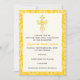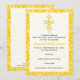 Damask First Holly Communion / Baptism / Confirmation invitation, featuring a yellow damask border and an elegant yellow cross on ivory background. A modern religious invitation for the traditional event of First Holy Communion, suitable for boys and girls. It can be used for several occasions such as Baptism / Christening or Confirmation.