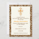 Damask First Holly Communion / Baptism / Confirmation invitation, featuring a brown damask border and an elegant orange cross on ivory background. A modern religious invitation for the traditional event of First Holy Communion, suitable for girls and boys. It can be used for several occasions such as Baptism / Christening or Confirmation.