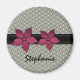 Sassy and trendy Damask Flowers Striped Border Magnet featuring an elegant damask background and a chic striped band with damask flowers. This fashionable magnet makes a stylish gift for a friend, relative or even yourself! Customise with your name or other text to give this design a personal touch.