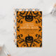 This whimsical design features a black ornamental damask style frame with a spooky pumpkins, bats and a creepy spider.The background of this elegant party invitation is orange. The back has a coordinating black damask pattern that is adorned with pumpkins.