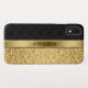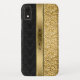 Monogrammed elegant black floral damask pattern and gold sparkling glitter with gold stripe