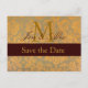 Damask Gold Save the Date Monogram Annoncement Announcement Postcard