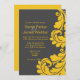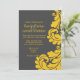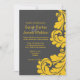 Damask Slate Grey and vibrant yellow 5 x 7 invitations. design features damask floral flourish in vibrant yellow on the right hand side of the card, against a Slate Grey background matching items available.
