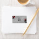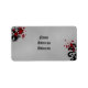 A grey background with an elegant vintage damask motif on it and blood splatters. Shown here on address labels. Add your details to them. I would not recommend this design on the return address labels as they are very small and the writing might be illegible.