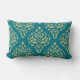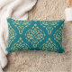 Damask Leafy Baroque Pattern Teal & Gold I Lumbar Cushion