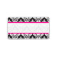 Damask Black White Hot Pink Wedding Invitation Mailing Address Labels.
