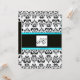 DAMASK MONOGRAM,black and white,blue turquase Invitation