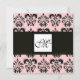 DAMASK MONOGRAM,black and white,pink Invitation