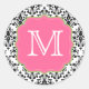 Damask Monogram Black Pink Green Classic Round Sticker
