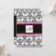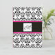 DAMASK MONOGRAM,black white, pink fuchsia violet Invitation