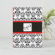 DAMASK MONOGRAM,Black,White,Red Invitation