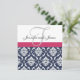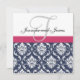 Damask Monogram Blue Pink White Wedding Invitation