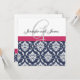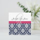 Damask Monogram Blue Pink White Wedding Invitation
