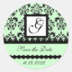 DAMASK MONOGRAM ,green Classic Round Sticker