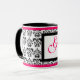 DAMASK MONOGRAM,Pink Fuchsia Black White Floral Mug