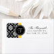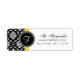 Monogram F Wedding Invitation Return Address Label with black and white damask and yellow accent colour. Customise with your monogram initial, name and address details. Choose the background colour and monogram colour too. Copyright Elke Clarke and Licensors.